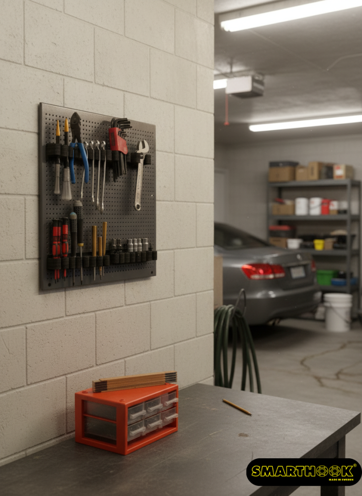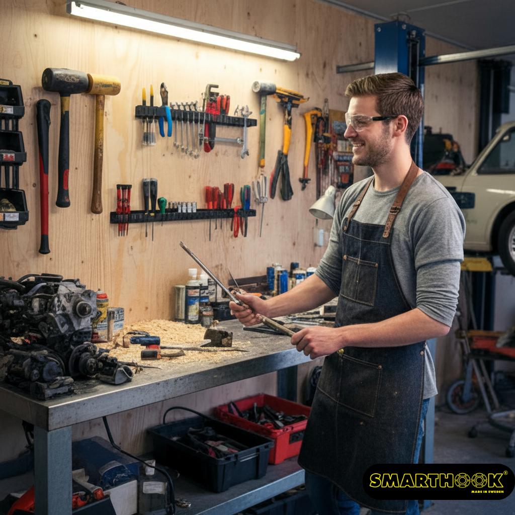 Där traditionella verktygshållare ofta är enformiga, platskrävande och dyra, erbjuder SmartHook en smart och enkel lösning på dessa problem. Vår produkt har en unik och effektiv vilket möjliggör förvaring av olika typer av verktyg på den ytan du vill, snabbt, smidigt och till ett lågt pris. En flexibel verktygshållare som skapar ordning och frigör plats i din verkstad, garage eller arbetsplats.